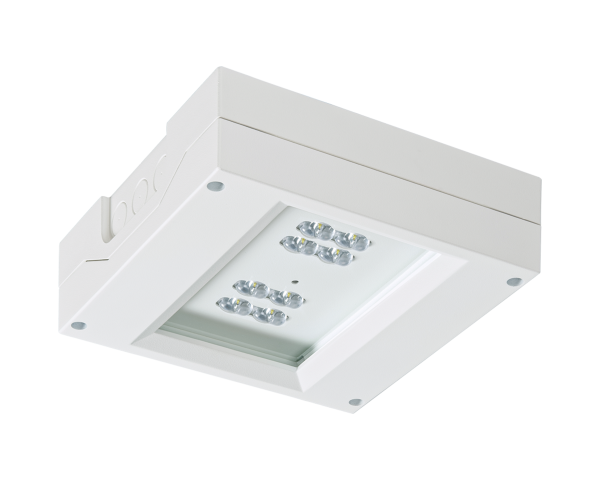 LED-Sicherheitsleuchte im witterungsfesten und ballwurfsicheren Aluminium-Druckgussgehäuse mit Sicherheitsglasscheibe, eingedichtet mit Silikon. Kabeleinführung in Leuchtengehäuse von hinten und unten möglich. IP65 mit Druckausgleichsventil und Doppelmembranstutzen, geeignet zum Einsatz in ungeschützten Außenbereichen, schlagzäh IK8, IFS (International Food Standards) geprüft,LED 6 Watt, 12 Watt oder 24 Watt. Über die auswählbaren lichtoptimierten Aufsatzoptiken je LED als Flächenoptik, Rettungswegoptik oder Tiefstrahloptik können extrem hohe Leuchtenabstände sowie Montagehöhen bis 65m realisiert werden. Ausführung entsprechend DIN EN 60598-1, DIN EN 60598-2-22 und DIN EN 1838.